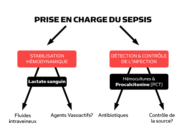 La PCT et le lactate sont des aides utiles au diagnostic et à la prise en charge du sepsis et complètent l'examen clinique général du patient [1].